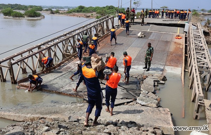 භටපිරිස් විසින් 2025 දෙසැම්බර් මස 2 දින සිට 16 දින දක්වා සිදුකළ අලුත්වැඩියා වලින් පසුව පළමුව හානියට පත් පාලම සාර්ථකව යථා තත්ත්වයට පත් කරන ලදී. ඒ අනුව, අඩි 50ක්ව පැවති මෙම පාලම 2025 දෙසැම්බර් මස 16 වන දින අඩි 120ක් දිගැති පාලමක් ලෙස නැවත විවෘත කිරීමට හැකි විය. 59 වන පාබල සේනාංකයේ සේනාංකාධිපති මේජර් ජෙනරල් එම්.ඩබ්ලිව්.එස් මිල්ලගල RWP RSP USP Hdmc psc සහ 591 පාබල බලසේනාවේ බලසේනාධිපති කර්නල් එම්.එස්.අයි අලුවිහාරෙ RWP RSP යන ජ්යෙෂ්ඨ නිලධාරීන්ගේ අධීක්ෂණය යටතේ භටපිරිස් විසින් මෙම අලුත්වැඩියා කටයුතු සිදුකරන ලදී.