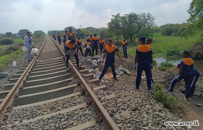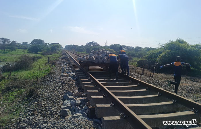 21 වන පාබල සේනාංකය යටතේ ස්ථාපිත 2 වන (ස්වේච්ඡා) බලඇණිය විජයබාහු පාබල රෙජිමේන්තුවේ භටපිරිස් විසින් චෙඩ්ඩිකුලම් සහ මුහන්දන්කුලම් අතර කිලෝමීටර් 251 කණුවේ සිට කිලෝමීටර් 250 කණුව දක්වා වූ දුම්රිය මාර්ගයේ ප්රතිසංස්කරණ කටයුතු සිදුකරන ලදී. මේ අතර, 54 වන පාබල සේනාංකය යටතේ ස්ථාපිත 8 වන බලඇණිය විජයබාහු පාබල රෙජිමේන්තුවේ භටපිරිස් විසින් ද 2025 දෙසැම්බර් මස 23 වන දින කිලෝමීටර් 279 කණුවේ සිට කිලෝමීටර් 280 කණුව දක්වා වූ දුම්රිය මාර්ගයේ ප්රතිසංස්කරණ කටයුතු සිදුකරන ලදී. එමඟින් හානි වූ ප්රදේශවල දුම්රිය මාර්ගවල දුම්රිය ගමනාගමන කටයුතු ආරක්ෂිතව යලි යථා තත්ත්වයට පත් කිරීමට හැකි වූහ. එසේම, මාර්ග සංවර්ධන අධිකාරිය විසින් සිදුකරන ලද ඉල්ලීමකට අනුව 59 වන පාබල සේනාංකය යටතේ රාජකාරි සිදුකරනු ලබන භටපිරිස් විසින් හානියට පත් නයාරු පාලම ප්රතිසංස්කරණ කටයුතු සඳහා සහාය ලබා දෙන අතර, එම පාලමේ ප්රතිසංස්කරණ කටයුතු දැනට සිදුකරමින් පවතී.