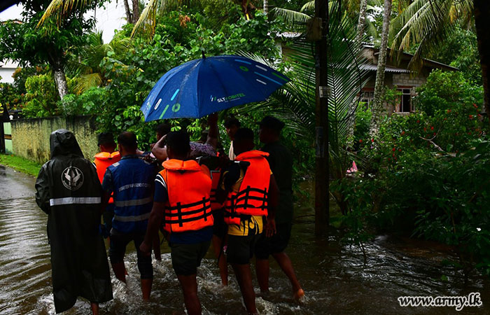 මේ අතර, 61 පාබල සේනාංකය යටතේ 573 වන පාබල බලසේනාවේ ස්ථාපිත 2 (ස්වෙච්ඡා) බලඇණිය ගැමුණු හේවා බලකායේ භටපිරිස් විසින් 2025 ඔක්තෝබර් මස 22 දින ගාල්ල, පියදිගම ප්රදේශයේ ගංවතුර තත්ත්වය ඉහළ යාම හේතුවෙන් අතරමංව සිටි මවක් සහ ඇයගේ මාස දෙකක් වයසැති බිළිඳා ඇතුළු සිවිල් වැසියන් සිව් දෙනෙකු බේරා ගන්නා ලදී. බේරාගත් එම පිරිස ආරක්ෂිතව තාවකාලික සහන සේවා කඳවුරක් ලෙස පවත්වාගෙන යනු ලබන සුදර්ශනාරාමය විහාරස්ථානය වෙත රැගෙන යනු ලැබීය. මෙම මෙහෙයුම සඳහා ගාල්ල ආපදා කළමනාකරණ මධ්යස්ථානය, ප්රාදේශීය ලේකම් කාර්යාලය සහ පළාත් පාලන ආයතනයන් සිය සහයෝගය යුද්ධ හමුදා භටපිරිස් වෙත ලබාදෙන ලදී.