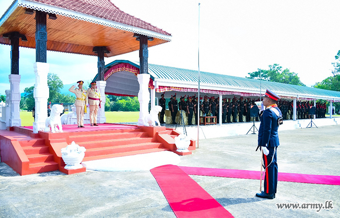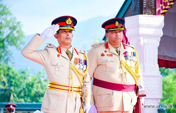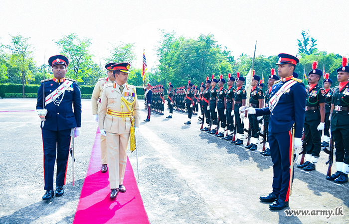 කඳවුරු පරිශ්රය වෙත පැමිණි නව රෙජිමේන්තු අධිපති වෙත භටපිරිස් විසින් හමුදා සම්ප්රදායානුකූල කඳවුරු මුරයේ සහ සම්මාන මුරයේ ගෞරවාචාරයන් පිරිනමන ලදී. පසුව එම ජ්යෙෂ්ඨ නිලධාරි විසින් රණවිරු ස්මාරකය වෙත ගෞරවාචාරය පිරිනැමීමෙන් අනතුරුව සියලු නිල තේ පැන් සංග්රහයකට සහභාගි වන ලදී. ඉන් පසුව එම ජ්යෙෂ්ඨ නිලධාරි විසින් භටපිරිස් ඇමතීම ද සිදුකරන ලදී.