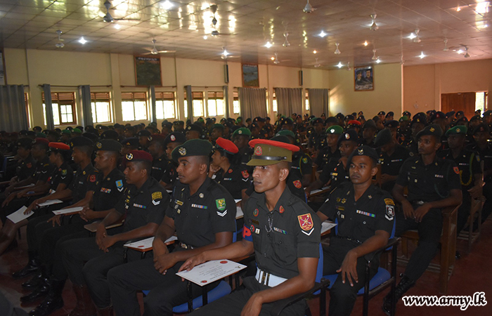 සහතිකපත් ප්රදානෝත්සවයේ ප්රධාන ආරාධිත අමුත්තා ලෙස සහභාගී වූ එම පුහුණු පාසලේ සේනාවිධායක බ්රිගේඩියර් ඒ.කේ.සී.එස්. ද සිල්වා RSP ndc සමාප්ති දේශනය පැවැත්වීය.