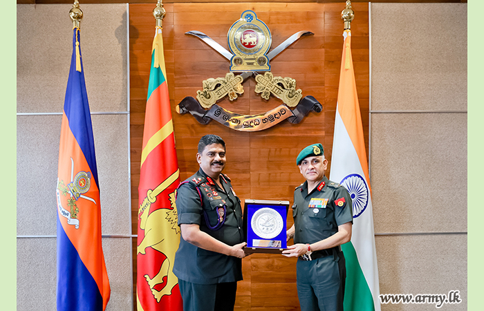 ඉන්දීය යුද්ධ හමුදා බුද්ධි අධ්යක්ෂ ජෙනරාල් ලුතිනන් ජෙනරල් ආර්.එස් රාමන් PVSM AVSM YSM සමඟින් බ්රිගේඩියර් එස්.එස්. ධලිවාල් SC YSM SM, කර්නල් යෂ් වර්ධන් පටෙල්, කර්නල් අශිෂ් සූඩ්, මෙරට ඉන්දියානු මහ කොමසාරිස් කාර්යාලයේ ආරක්ෂක උපදේශක ඉන්දීය නාවික හමුදාවේ කපිතාන් ආනන්ද් මුකුන්දන්, ලුතිනන් කර්නල් වික්රාන්ට් විශ්වස්රාඕ දේශ්මුක් සහ මෙරට ඉන්දියානු මහ කොමසාරිස් කාර්යාලයේ සහකාර ආරක්ෂක උපදේශක ලුතිනන් කර්නල් මන්දීප් සිං යන ජ්යෙෂ්ඨ නිලධාරින්ගෙන් සමන්විත දූත පිරිසක් 2025 සැප්තැම්බර් මස 17 දින යුද්ධ හමුදා මූලස්ථානයේදී යුද්ධ හමුදාධිපති ලුතිනන් ජෙනරල් ලසන්ත රොද්රිගෝ RSP ctf-ndu psc IG හමුවිය.