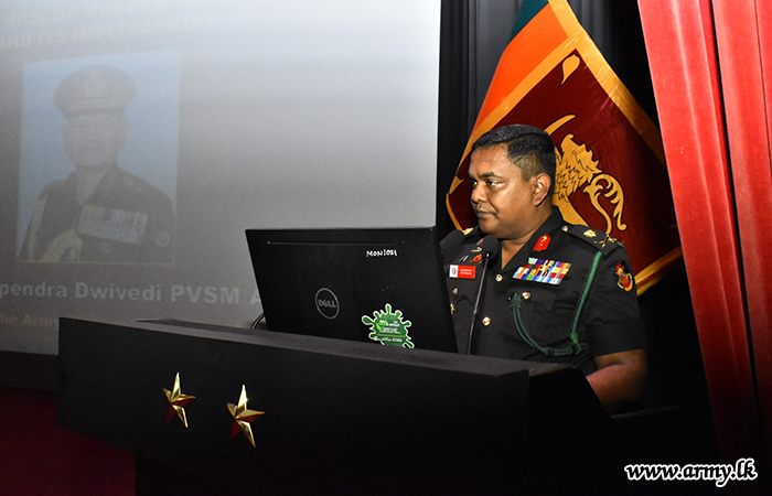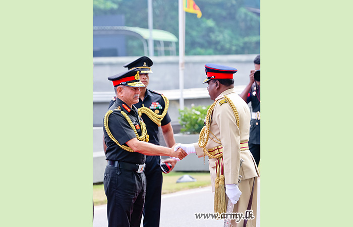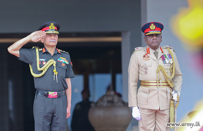 යුද්ධ හමුදා මූලස්ථානය වෙත පැමිණි, ඉන්දියානු යුද්ධ හමුදාධිපති ජෙනරල් උපේන්ද්ර ද්විවේදි යුද්ධ හමුදාධිපති ලුතිනන් ජෙනරල් ලසන්ත රොද්රිගෝ RSP ctf-ndu psc IG විසින් පිළිගන්නා ලද අතර, අනතුරුව, යුද්ධ හමුදා භටපිරිස් විසින් ඉන්දියානු යුද්ධ හමුදාධිපති වෙත හමුදා සම්ප්රදායානුකූල සම්මාන මුරයේ ගෞරවාචාරය පිරිනමන ලදී.