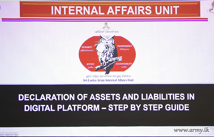 යුද්ධ හමුදා මූලස්ථානයේ අභ්යන්තර කටයුතු ඒකකය විසින් නවතමයෙන් හඳුන්වා දුන් මධ්යගත ඉලෙක්ට්රොනික පද්ධති හරහා වත්කම් හා බැරකම් ප්රකාශන ඉදිරිපත් කිරීම පිළිබඳ දැනුවත් කිරීමේ වැඩමුළුවක් 2026 අප්රේල් මස 16 වන දින යුද්ධ හමුදා මූලස්ථානයේදී පවත්වන ලදී.