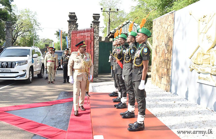 එම මූලස්ථාන පරිශ්රය වෙත සපැමිණි මේජර් ජෙනරල් ජේ.එස්.බී.ඩබ්ලිව් පල්ලෙකුඹුර RWP RSP ndu psc වෙත ගජබා රෙජිමේන්තුවේ භටපිරිස් විසින් හමුදා සම්ප්රදායානුකූල කඳවුරු මුරයේ සහ සම්මාන මුරයේ ගෞරවාචාරයන් පිරිනමන ලදී.