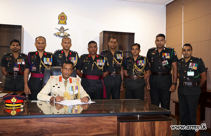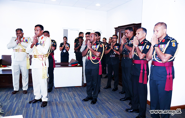 ආගමික වතාවත් සිදු කිරීමෙන් අනතුරුව, යුද්ධ හමුදා මූලස්ථානයේ පිහිට් යුද සේවා ලේකම් කාර්යාලයේ දී සිය ධූරයේ රාජකාරි භාරගැනීම සනිටුහන් කරමින් එම ජ්යෙෂ්ඨ නිලධාරි නිල ලේඛනයකට අත්සන් තැබීය.