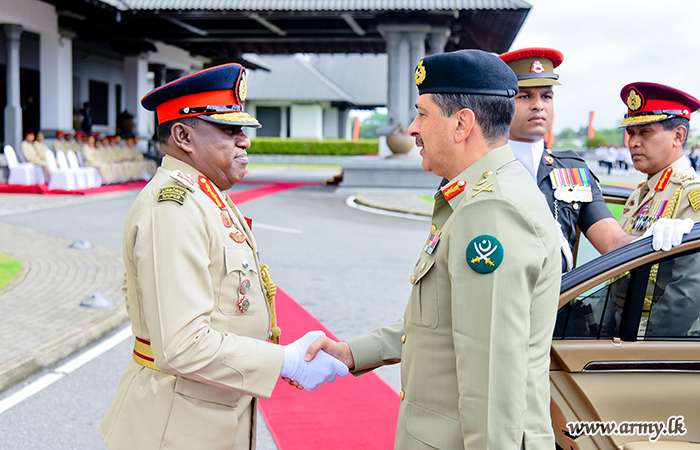 යුද්ධ හමුදා මූලස්ථානය වෙත පැමිණි පාකිස්ථානු යුද්ධ හමුදා මාණ්ඩලික ප්රධාන, ශ්රී ලංකා යුද්ධ හමුදාවේ විධායක ජෙනරාල් මේජර් ජෙනරල් කේ.ටී.පී ද සිල්වා RSP ndu psc විසින් පිළිගැනීමෙන් අනතුරුව එම ජ්යෙෂ්ඨ නිලධාරි වෙත හමුදා සම්ප්රදායානුකූල සම්මාන මුරයේ ගෞරවාචාරයන් පිරිනමන ලදී.