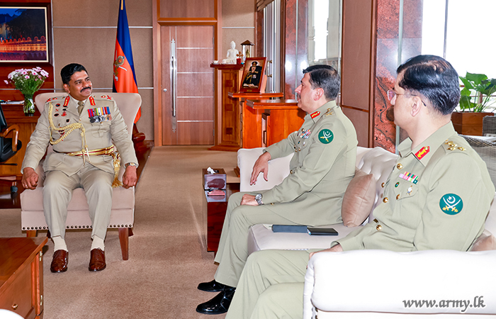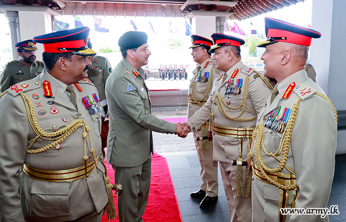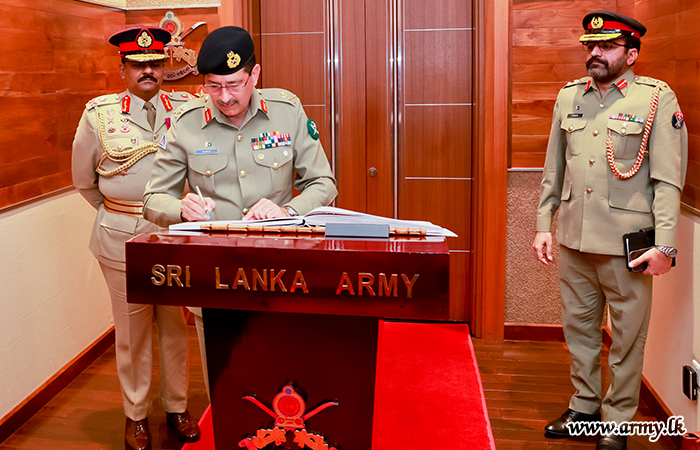 ඉන් අනතුරුව, ශ්රී ලංකා යුද්ධ හමුදාධිපති ලුතිනන් ජෙනරල් ලසන්ත රොද්රිගෝ RSP ctf-ndu psc IG විසින් සංචාරයේ නිරත පාකිස්ථානු යුද්ධ හමුදා මාණ්ඩලික ප්රධාන පිළිගන්නා ලදී. යුද්ධ හමුදාධිපතිතුමන් සංචාරයේ නිරත පාකිස්ථානු යුද්ධ හමුදා මාණ්ඩලික ප්රධාන වෙත යුද්ධ හමුදා මූලස්ථානයේ ප්රධාන මාණ්ඩලික නිලධාරින් හඳුන්වාදීමෙන් අනතුරුව එම ජ්යෙෂ්ඨ නිලධාරින් සමූහ ඡායාරූපයකට පෙනීසිට සුහඳ සාකච්ඡාවක ද නිරතවිය.