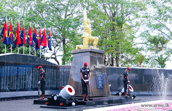 ඉන්පසුව, යුද්ධ හමුදාධිපතිතුමන්, ශ්රී ලංකා කාලතුවක්කු හමුදාවේ කර්නල් සේනාවිධායක, ජ්යෙෂ්ඨ නිලධාරින්, සෙසු නිලයන් සහ මියගිය රණවිරුවන්ගේ පවුලේ සාමාජිකයන් සමඟ එක්ව රණවිරු ස්මාරකය වෙත පුෂ්පෝපහර දැක්වූහ. හිරු නැගෙනා මොහොතෙදිත් හිරු බසිනා මොහොතෙදිත් රට වෙනුවෙන් දිවිපිදු විරෝදාර රණවිරුවන් වෙනුවෙන් හමුදා සම්ප්රදායානුකුලව වැයෙන යුද්ධ හමුදා බියුගල් නලාකරුවන්ගේ අවර රණවිරු අනුස්මරණ බියුගල් නාදයෙන් පසුව අවිදිව සිටි මුර සෙබළුන් රණවිරු ස්මාරකය වෙතින් බැස යන ලදී.