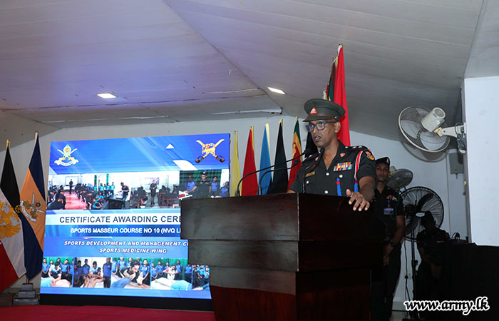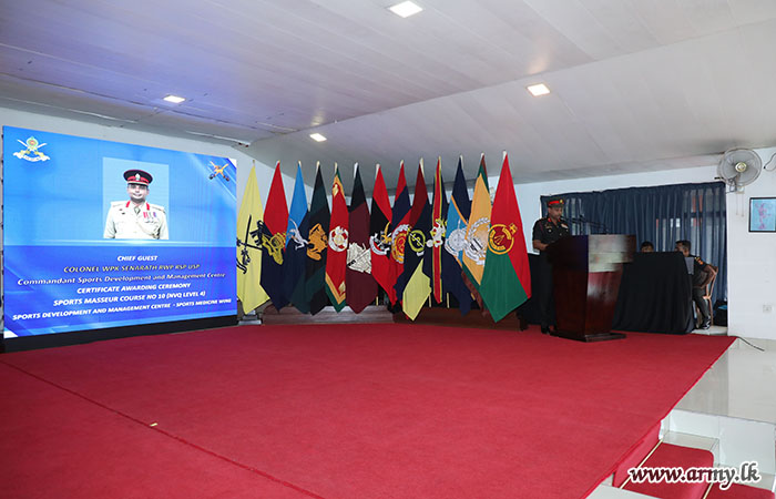 ශ්‍රී ලංකා යුද්ධ හමුදා ක්‍රීඩා වෛද්‍ය අංශය මගින් සංවිධානය කරන ලද ක්‍රීඩා සම්බාහන පාඨමාලා අංක - 10, 2025 දෙසැම්බර් මස 19 දින ශ්‍රී ලංකා යුද්ධ හමුදා සංඥා බලකායේ රෙජිමේන්තු දේශන ශාලාවේදී සාර්ථකව අවසන් කළේය.
