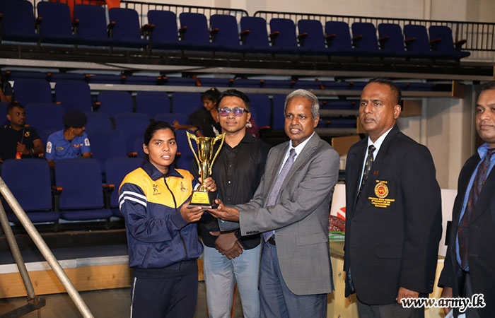 3 (ස්වේච්ඡා) ශ්රී ලංකා යුද්ධ හමුදා කාන්තා බලකායේ සැරයන් එච්.එස් ප්රියදර්ශනී කිලෝග්රෑම් 51 ට අඩු බර පන්තියේ කැපී පෙනෙන දක්ෂතා දැක්වීම වෙනුවෙන් තරඟාවලියේ දක්ෂතම මුෂ්ඨි ප්රහාර ක්රීඩිකාව ලෙස තේරී පත් විය.