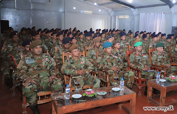 අනතුරුව, සේනාවිධායක භටපිරිස් ඇමතූ අතර එහිදී වෘත්තීය විශිෂ්ටත්වයේ පදනම ලෙස ස්වයං අවබෝධයේ වැදගත් වන බව අවධාරණය කළේය. හමුදා මෙහෙයුම්වලදී මෙන්ම සිවිල් කටයුතුවලදීද උපරිම දක්ෂතා දැක්වීම සහතික කිරීම සඳහා, සිය අනන්යතාවය, මෙහෙවර සහ නිශ්චිත අරමුණු පැහැදිලිව හඳුනා ගන්නා ලෙස සේනාවිධායක සියලුම සාමාජිකයන් දිරිමත් කළේය. පසුව, සේනාවිධායක වෙත විශේෂ සමරු තිළිණයක් පිරිනමන ලද අතර, ඉන් අනතුරුව කඳවුරු පරිශ්රය නිරීක්ෂණය කළේය.