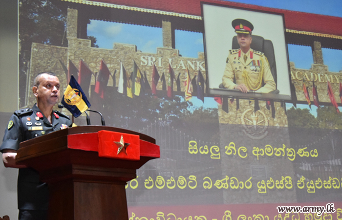 අනතුරුව, නව සේනාවිධායක විසින් සිනෝ - ලංකා මිත්රත්ව ශ්රවණාගාරයේදී සියලු නිලයන් අමතමින්, අනාගතයට ගැළපෙන හමුදා නායකයින් බිහිකිරීම උදෙසා සාමූහික වගකීම, කැපවීමෙන් යුත් සේවය, විනය සහ වෘත්තීය විශිෂ්ටත්වය අත්යවශ්ය බවත්, එමෙන්ම ධනාත්මකව කටයුතු කිරීමේ වැදගත්කම සහ පුද්ගලික ජීවිතය සාර්ථක කරගැනීම පිළිබඳවත් පෙන්වා දුන්නේය.