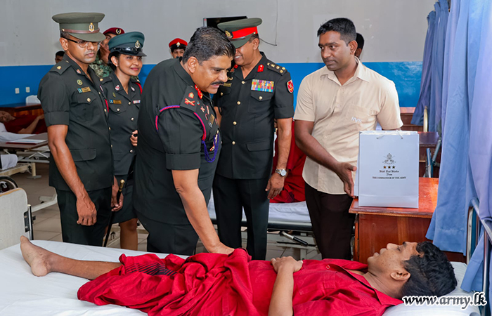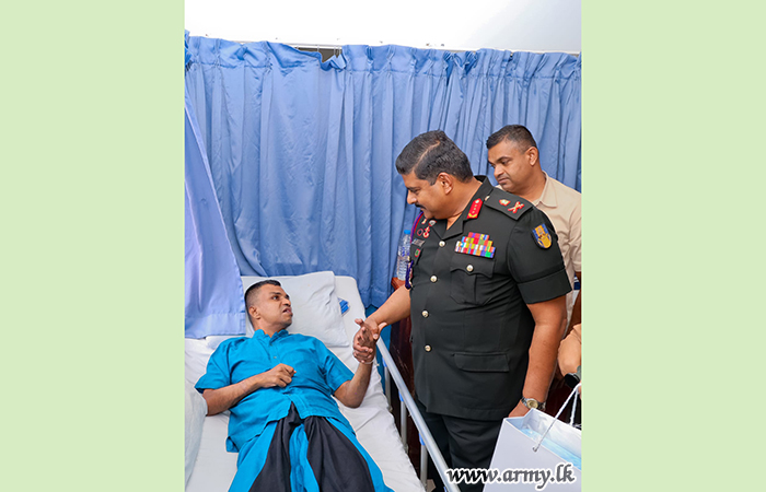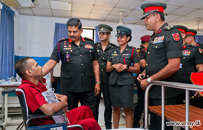 සංචාරය අතරතුරදී, යුද්ධ හමුදාධිපතිතුමන් විසින් රණක්ෂිතයට පත්ව ප්රථිකාර ලබන එම රණවිරුවන්ගේ සුවදුක් විමසමින් සුහදව අදහස් හුවමාරු කර ගත් අතර, ඔවුන් වෙත අත්යවශ්ය ද්රව්ය අඩංගු ත්යාග පාර්සල් බෙදා දෙන ලදී. පසුව, එතුමන් ඔවුන් සමඟින් තේ පැන් සංග්රහයක් සඳහා එක් වී සමූහ ඡායාරූපයකටද පෙනී සිටියේය.
