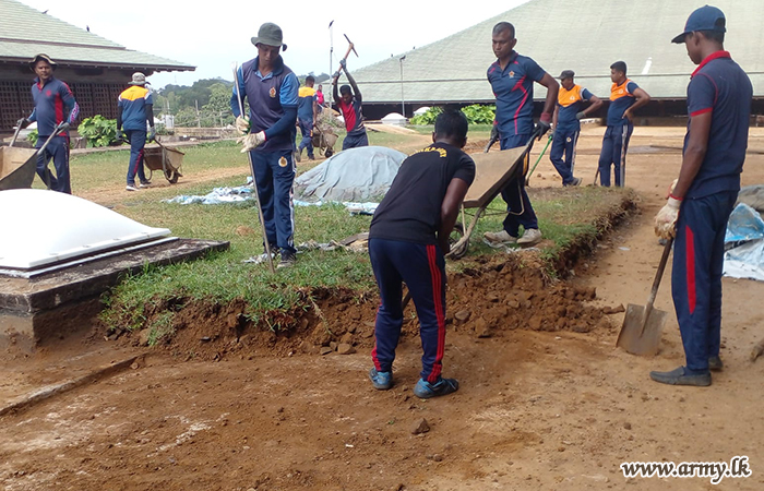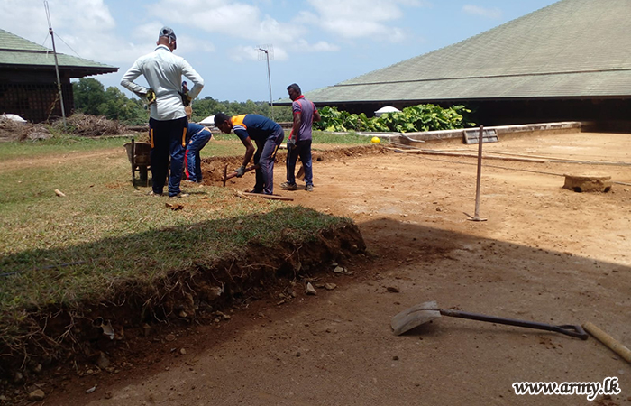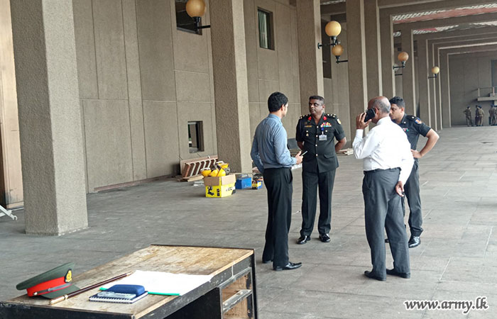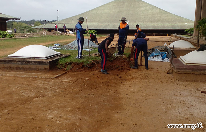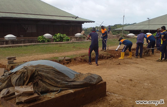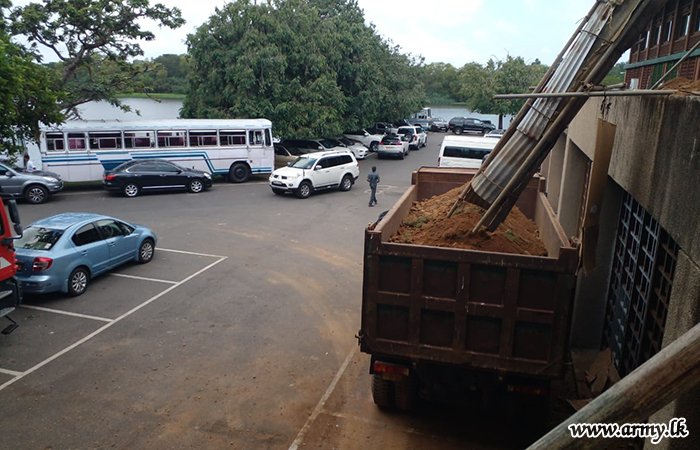 ඉංජිනේරු සේවා අධ්යක්ෂ මණ්ඩලයේ අධීක්ෂණය යටතේ 6 (ස්වේච්ඡා) ඉංජිනේරු සේවා රෙජිමේන්තුවේ භටපිරිස් විසින් පාර්ලිමේන්තු සංකීර්ණයේ ප්රතිසංස්කරණ කටයුතු සිදුකරනු ලබයි.