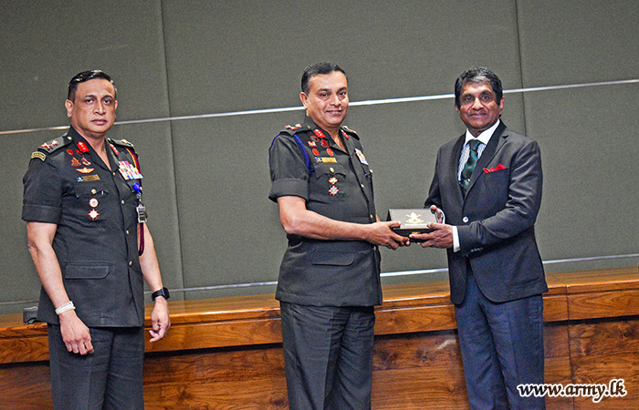 දේශනයේ සමාප්තිය සනිටුහන් කරමින් යුද්ධ හමුදා නිලධාරින්ගේ වෘත්තීමය ප්රවර්ධනය වෙනුවෙන් සිය දැනුම සහ අත්දැකීම් බෙදාගැනීම ඇගයීමට ලක්කරමින් ශ්රී ලංකා යුද්ධ හමුදා මාණ්ඩලික ප්රධාන මේජර් ජෙනරල් ඩී.කේ.එස්.කේ දොලගේ USP nps psc විසින් දේශනය පවත්වන ලද සෙනරත් ජයසේකර මහතා වෙත සමරු තිළිණයක් පිරිනමන ලදී.