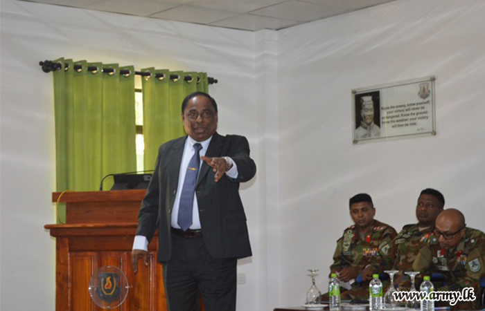 ප්රධාන දේශනය 59 පාබල සේනාංකයේ හිටපු සේනාංකාධිපති මේජර් ජෙනරල් නන්දන උඩවත්ත (විශ්රාමික) ජ්යෙෂ්ඨ නිලධාරි විසින් පවත්වන ලදී. එහිදී ඔහු දැඩි පීඩනයක් යටතේ නායකත්වය ලබා දීම, මෙහෙයුම් සැලසුම් කිරීම සහ සංකීර්ණ භූමි ප්රදේශයන්හි ඉහළ තීව්රතාවයකින් යුත් මෙහෙයුම් මෙහෙයවීම පිළිබඳ සිය ප්රායෝගික අත්දැකීම් සහ තීක්ෂණ බුද්ධිය බෙදා හදා ගත්තේය.