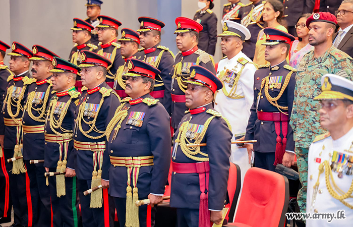 යුද්ධ හමුදාධිපතිතුමන් මේජර් ජෙනරල් නිලයට උසස්වීම් ලැබූ ජ්යෙෂ්ඨ නිලධාරින් වෙත එම අධිකාරියේ සංකේත ප්රධානය කරයි 2025-12-15 තව කියවන්න