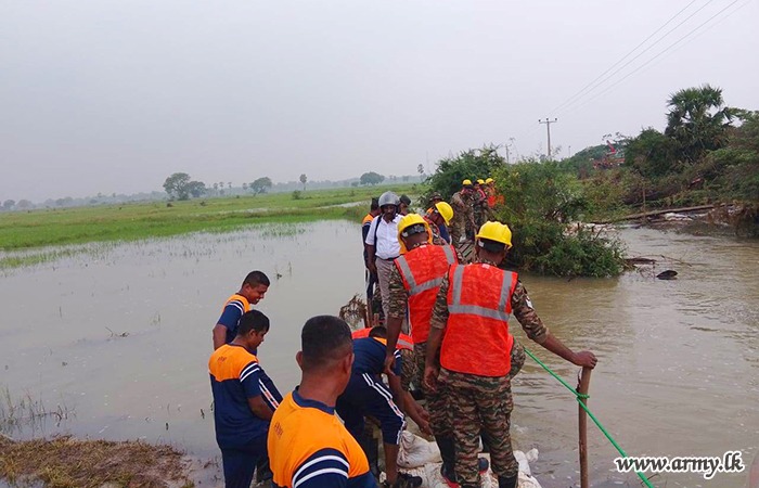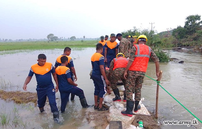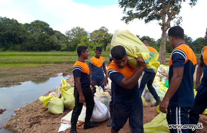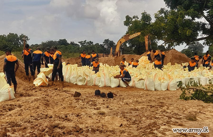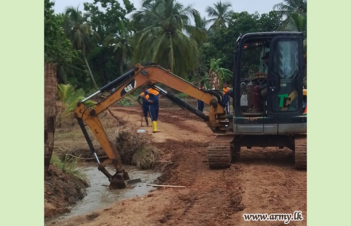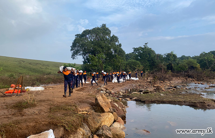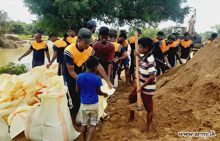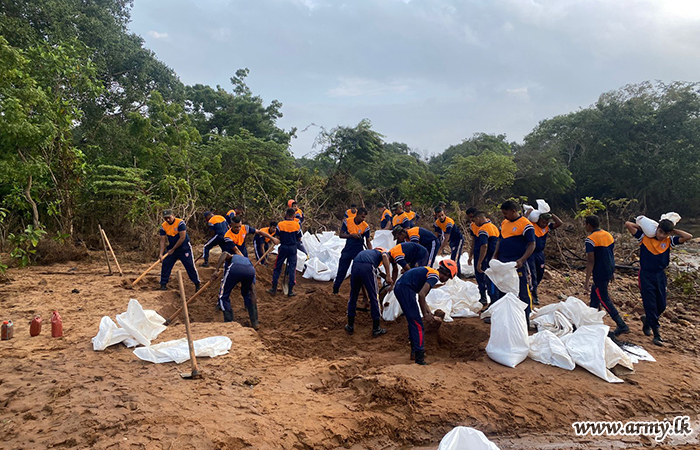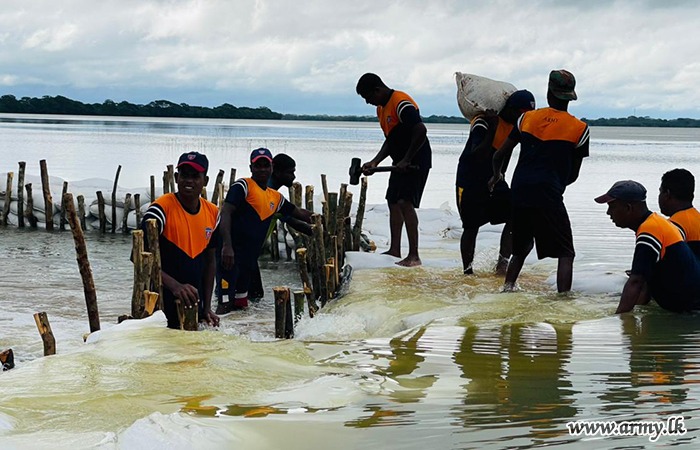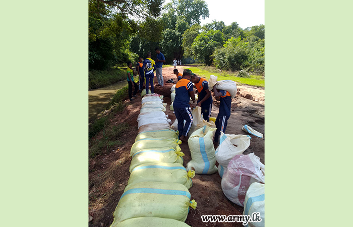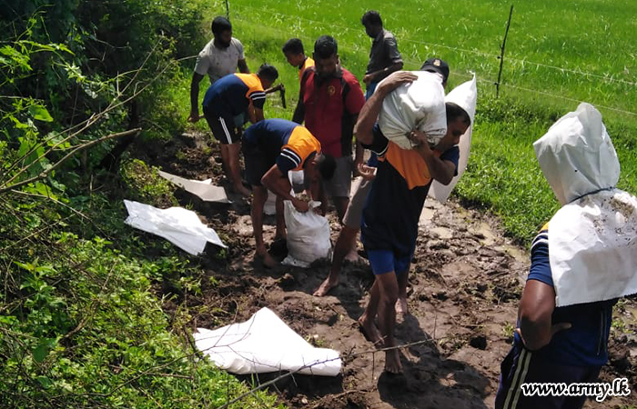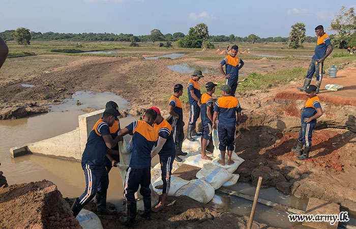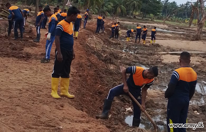 11 වන පාබල සේනාංකය යටතේ ස්ථාපිත 1 වන බලඇණිය ගැමුණු හේවා බළකායේ භටපිරිස් විසින් කන්දේ ඇල ප්රදේශයේ හානියට පත් ඇළ මාර්ග අලුත්වැඩියා කිරීම සඳහා වාරිමාර්ග දෙපාර්තමේන්තුවට සහාය ලබාදෙන ලදී. තවද, වෙල්කැටිය අමුණ ගම්මානයේ පොතව අමුණ අලුත්වැඩියා කිරීම සඳහා 2 වන ශ්රී ලංකා රයිෆල් බළකායේ භටපිරිස් ද සිය සහාය ලබාදෙනු ලැබීය.