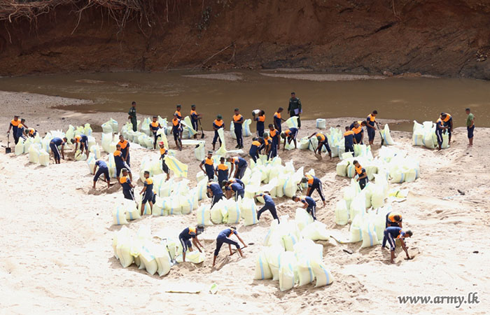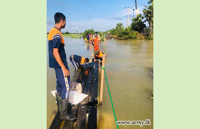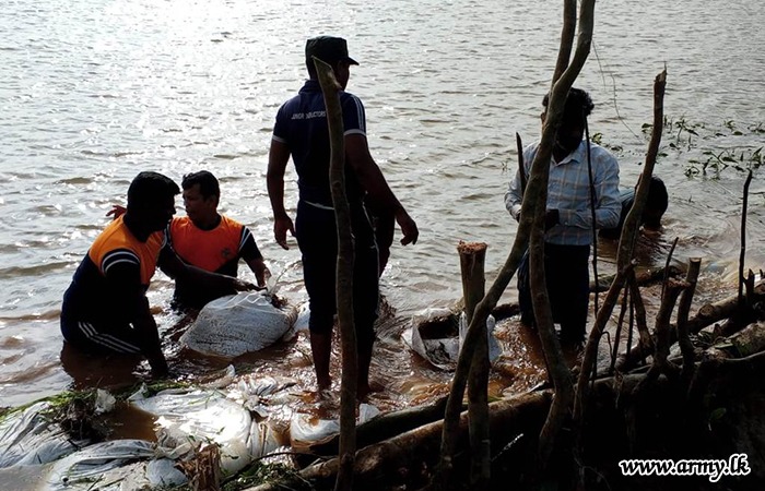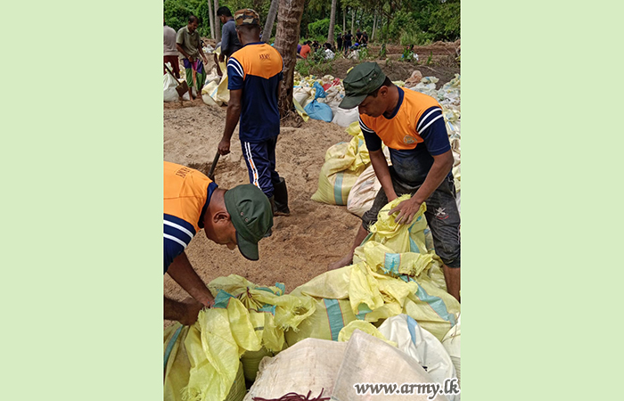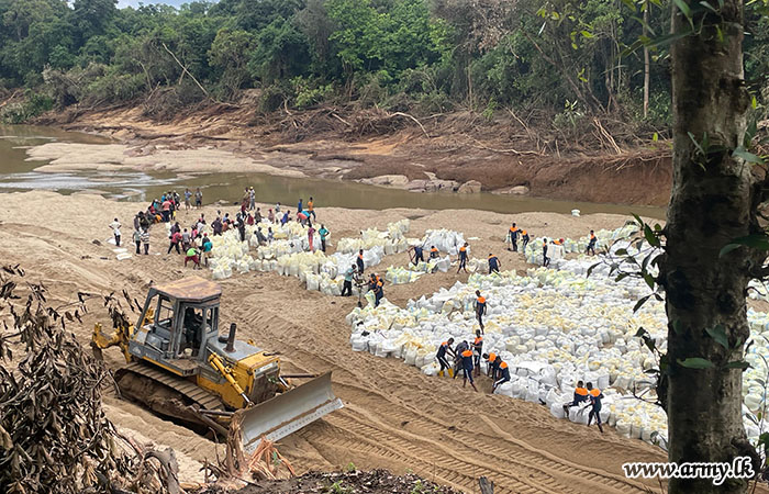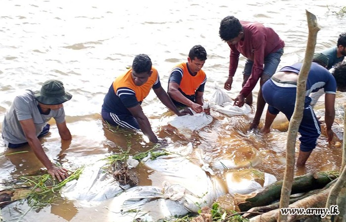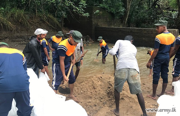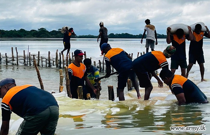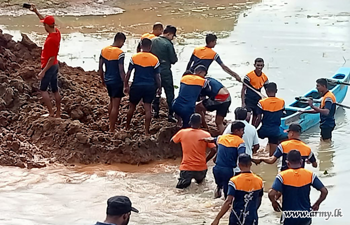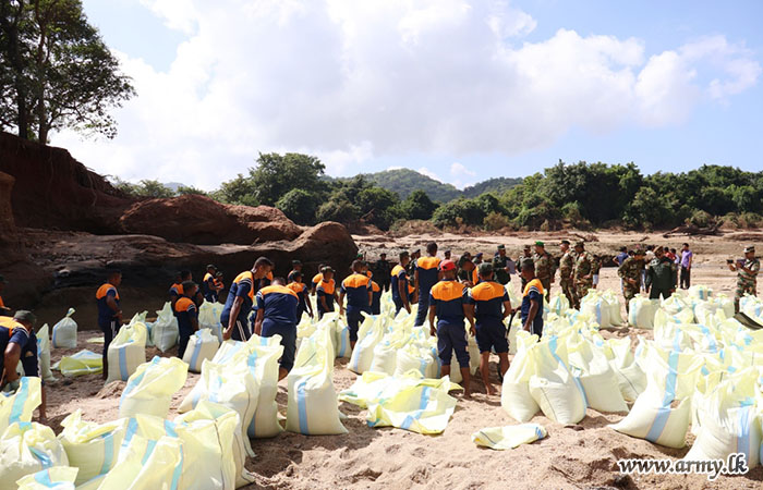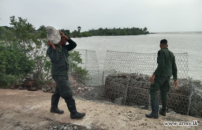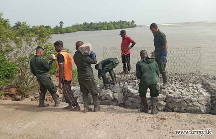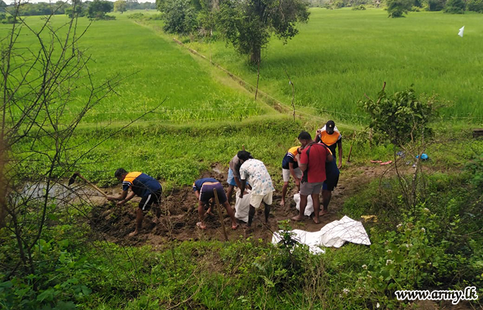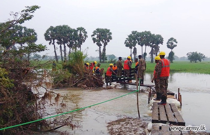 11 වන පාබල සේනාංකය යටතේ ස්ථාපිත 1 වන බලඇණිය ගැමුණු හේවා බළකායේ භටපිරිස් විසින් කන්දේ ඇල ප්රදේශයේ හානියට පත් ඇළ මාර්ග අලුත්වැඩියා කිරීම සඳහා වාරිමාර්ග දෙපාර්තමේන්තුවට සහාය ලබාදෙන ලදී. තවද, වෙල්කැටිය අමුණ ගම්මානයේ පොතව අමුණ අලුත්වැඩියා කිරීම සඳහා 2 වන ශ්රී ලංකා රයිෆල් බළකායේ භටපිරිස් ද සිය සහාය ලබාදෙනු ලැබීය.