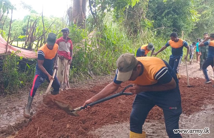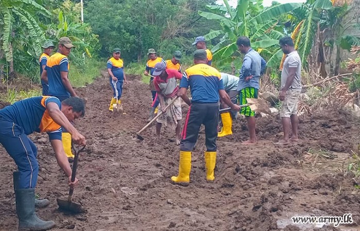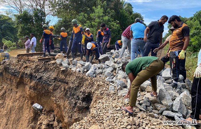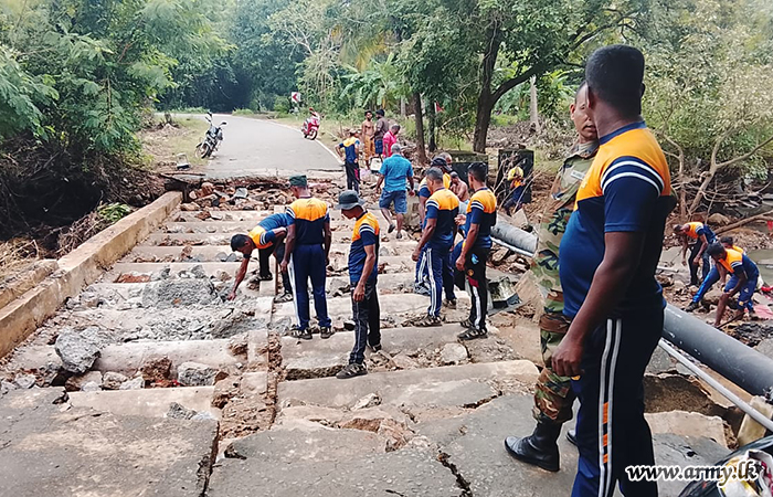 මීට අමතරව, 23 වන බලඇණිය විජයබාහු පාබල රෙජිමේන්තුවේ භටපිරිස් විසින් මාතටිල්ල ප්රදේශයේ හානියට පත් ඇළ මාර්ග අලුත්වැඩියා කිරීම සඳහා වාරිමාර්ග දෙපාර්තමේන්තුව වෙත සිය සහයෝගය ලබාදුන් අතර, 4 වන බලඇණිය ශ්රී ලංකා පාබල හමුදාව විසින් නාවුල ලෙනදොර සිට වැලිකඩයාය දක්වා අතර වූ ප්රවේශ මාර්ගයේ අලුත්වැඩියා කටයුතු සහ කවටය අමුණ ඇළ මාර්ගය වැලි කොට්ට දමා ප්රතිසංස්කරණය කිරීම සිදු කරන ලදී.