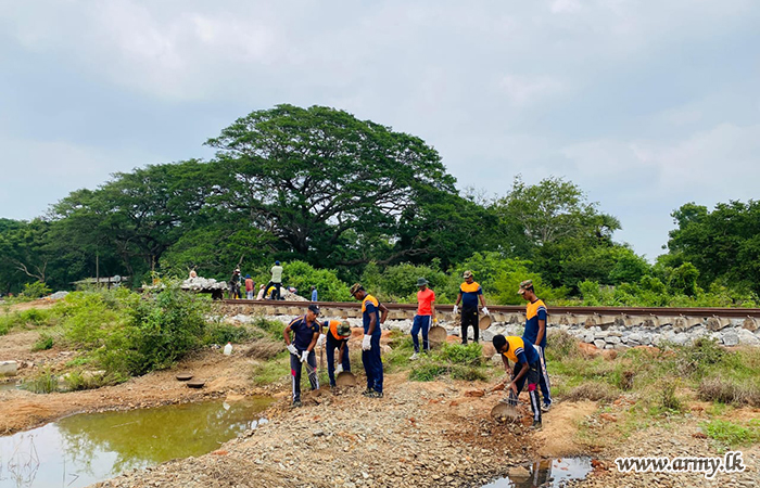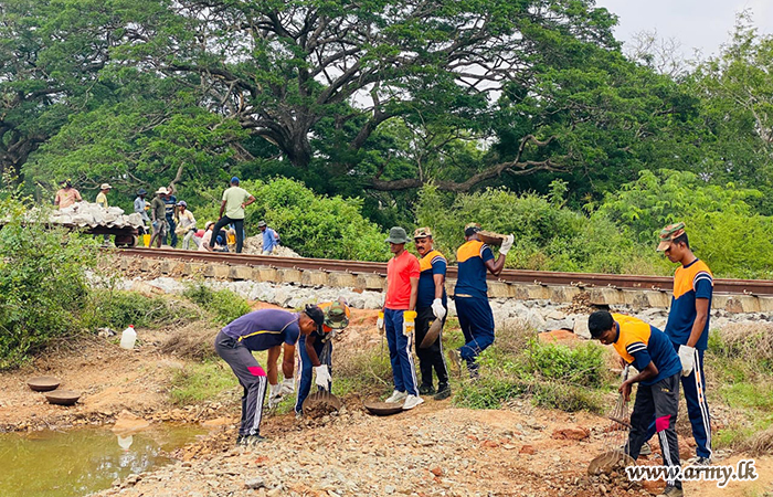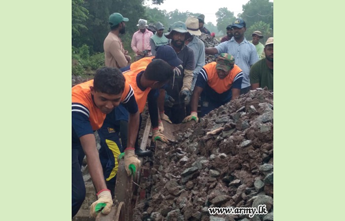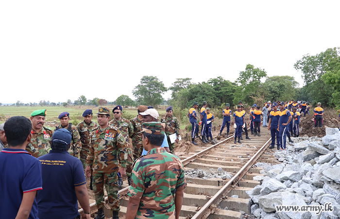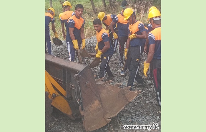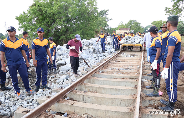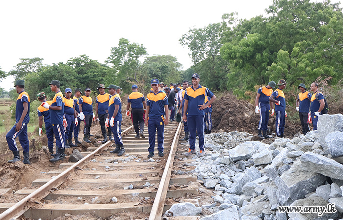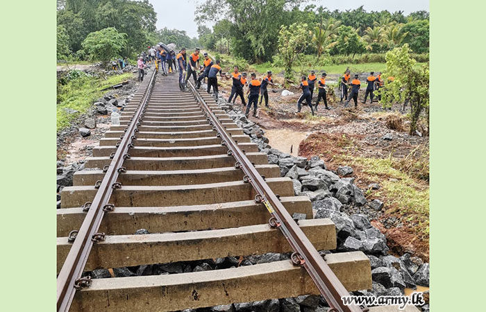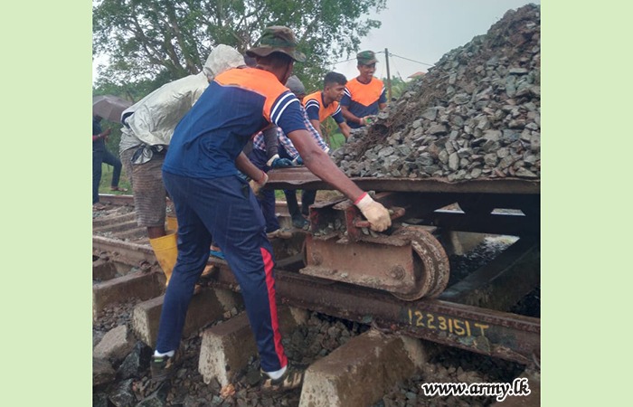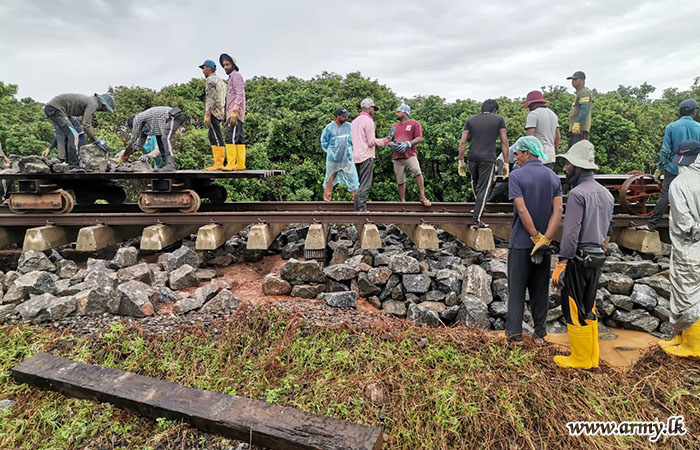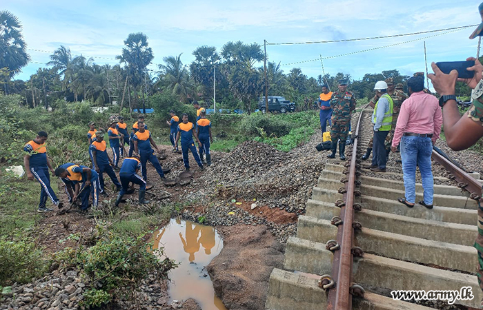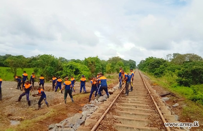 ආරක්ෂක සේනා මූලස්ථානය - නැගෙනහිර යටතේ සේවයේ නියුතු භට පිරිස් විසින් අයහපත් කාලගුණික තත්ත්වයන් හේතුවෙන් බරපතළ හානි සිදුවූ කොළඹ–මඩකලපුව දුම්රිය මාර්ගයේ මනම්පිටිය ප්රදේශය අලුත්වැඩියා කටයුතු සිදු කරනු ලබයි.