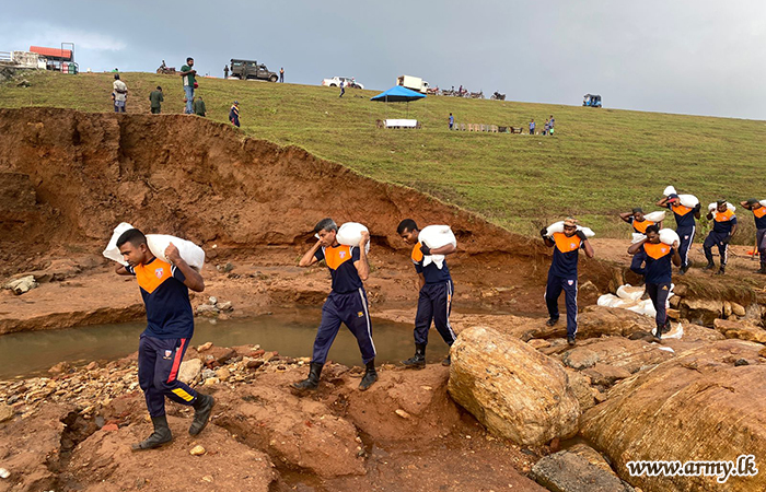 හානියට පත් යටිතල පහසුකම් යථා තත්ත්වයට පත් කිරීම සඳහා මෙම භට පිරිස් අසීරු තත්ත්වයන් මධ්යයේ වුවද දිවා රාත්රී නොබලා නොපසුබට උත්සාහයක නිරත වූහ.