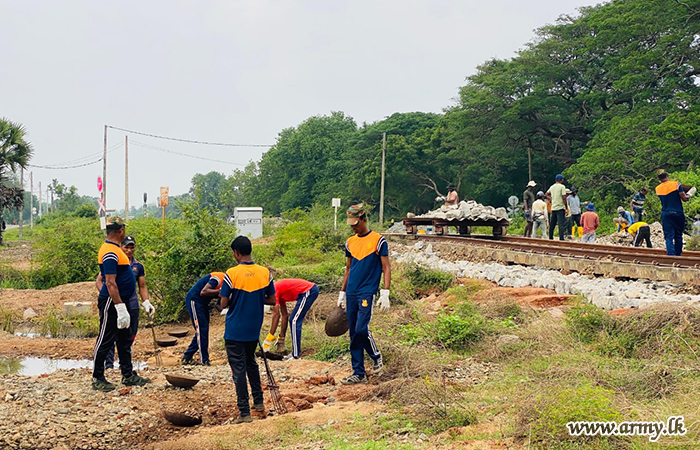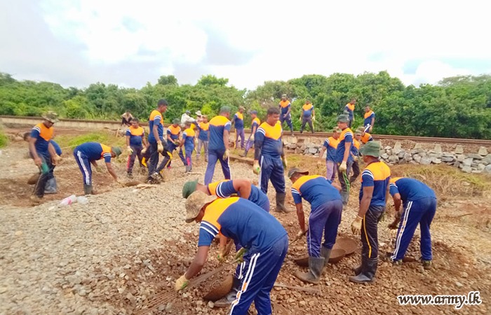 ආරක්ෂක සේනා මූලස්ථානය - වන්නි යටතේ ස්ථාපිත 8 වන බලඇණියේ විජයබාහු පාබල රෙජිමේන්තුවේ භටපිරිස් විසින් 2025 දෙසැම්බර් මස 16 වන දින මුරුන්කන් 279 කිලෝමීටර් කණුව සහ 280 කිලෝමීටර් කණුව අතර දුම්රිය මාර්ගය ප්රතිසංස්කරණය කරන ලදී.