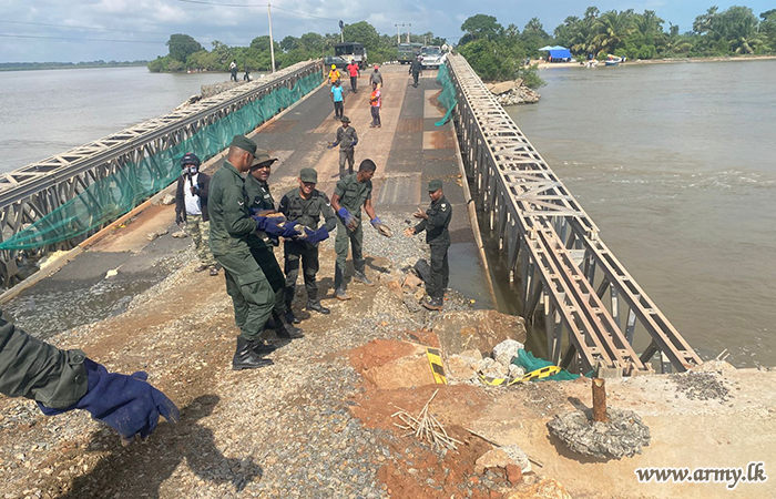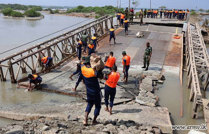 මීට අමතරව, මුලතිව්-කොකිලායි මාර්ගයේ නායාරු පාලම සහ හැටන් ප්රදේශයේ කාසල්රී පාලම ද යළි ඉදිකිරීමට පියවර ගන්නා ලදී. ගංවතුරින් පීඩාවට පත් ප්රදේශවල සුන්බුන් ඉවත් කරමින් මහජන සෞඛ්ය සහ අත්යවශ්ය සේවා පවත්වාගෙන යාමට ද ඉංජිනේරු බලකාය වැඩිදුරටත් සහාය විය.
