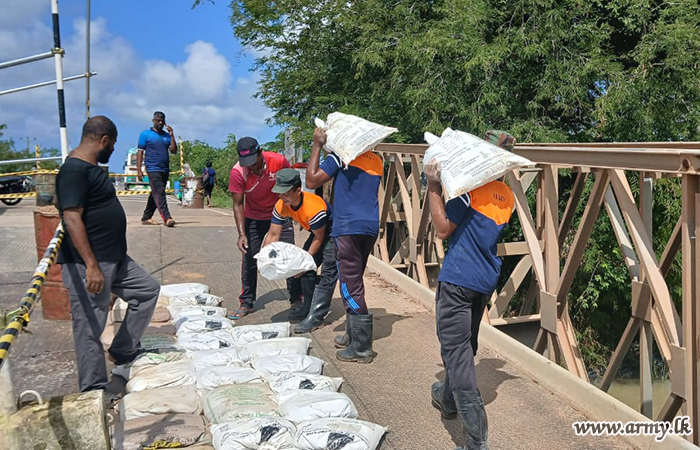එමෙන්ම, අධික වර්ෂාපතනය හේතුවෙන් කුඹුක්කන් ඔය අමුණෙහි අපද්රව්ය රැස්වීම හේතුවෙන් ජලය ගලායාම අවහිර වීම හේතුවෙන් 121 වන පාබල බලසේනාවේ භටපිරිස් එම අපද්රව්ය ඉවත් කරන ලදී. ඊට අමතරව, අමුණු බැම්මේ ඛාදනයට ලක් වූ කොටසක් වෙත වැලි කොට්ට යොදා බැම්ම ශක්තිමත් කරන ලදී.