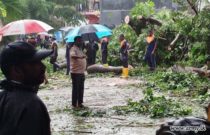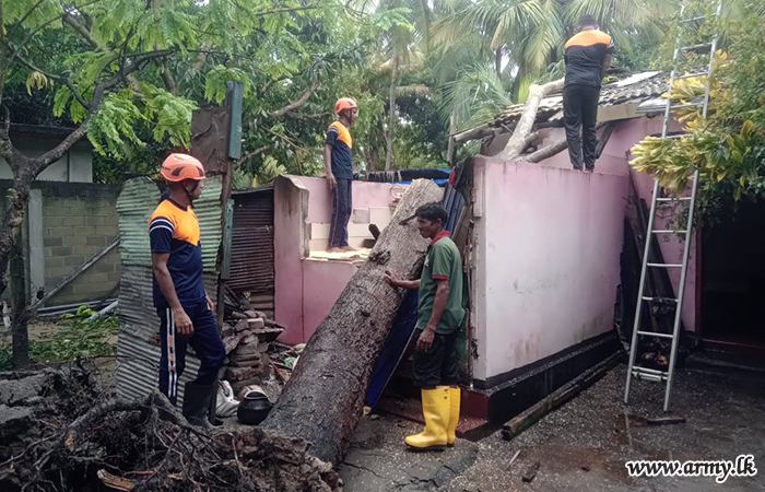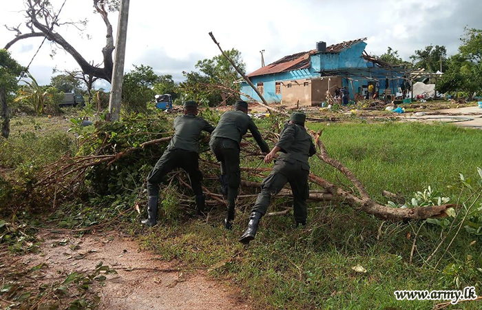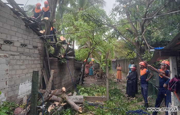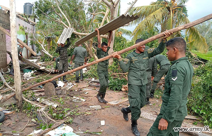 පවතින අයහපත් කාලගුණික තත්ත්වය හේතුවෙන් අච්චුවේලි, නාවන්තුරේ දකුණ සහ නල්ලූර් යන ප්රදේශවල නිවාස මතට ගස් කඩා වැටීමෙන් එම නිවාසවල වහලවලට අර්ධ හානි සිදු විය. 51 වන පාබල සේනාංකය යටතේ සේවයේ නියුතු වන භටපිරිස් වහාම එම ස්ථාන වෙත ගොස් හානියට පත් නිවාස පිරිසිදු කිරීමට සහ කඩා වැටුණු ගස් ඉවත් කිරීමට පියවර ගත්හ.