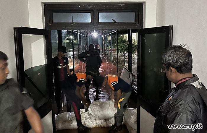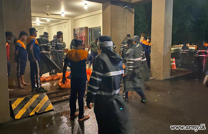 ආරක්ෂක සේනා මූලස්ථානය - බටහිර යටතේ පවතින භටපිරිස් විසින් පාර්ලිමේන්තු සංකීර්ණය අවට ප්රදේශයේ ගංවතුර වැළැක්වීම සඳහා අත්යවශ්ය පියවර ගනු ලැබීය. එහිදී 144 වන පාබල බලසේනාවට අයත් ඒකාබද්ධ කණ්ඩායමක් විසින් ජලයෙන් යටවීමේ අවදානමක් පවතින ස්ථාන ශක්තිමත් කිරීම සඳහා වැලි කොට්ට අතුරා එම පරිශ්රය ආරක්ෂා කිරීමට කටයුතු කරන ලදී.