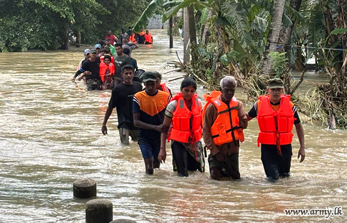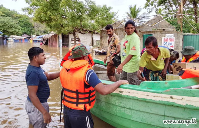 54 පාබල සේනාංකය යටතේ ස්ථාපිත 4 බලඇණිය ගජබා රෙජිමේන්තුවේ භටපිරිස් විසින් පූමලන්තන් ප්රදේශයේ පවුල් 33ක් (පුද්ගලයන් 127ක්) ඉවත් කර කට්ටියාඩප්පන් පාසලේ ස්ථාපිත අවතැන් වූවන්ගේ රැදවුම් මධ්යස්ථානය වෙත රැගෙන යන ලදී. ඊට අමතරව, 10 බලඇණිය ශ්රී ලංකා සිංහ රෙජිමේන්තුවේ භටපිරිස් විසින් නායාරු පාලමෙහි තාවකාලික අලුත්වැඩියාවන් සිදුකරන ලද අතර, එමඟින් ප්රදේශයේ පා ගමනින් ගමන් කරන සිවිල් ජනතාවට ආරක්ෂිත ගමන් කිරීමට හැකි විය. 141 වන පාබල බලසේනාවේ භටපිරිස් විසින් ගම්පහ සහ ජා-ඇල ප්රදේශවල ඇති වූ දරුණු ගංවතුරෙන් පීඩාවට පත් සිවිල් වැසියන්ට ආහාර පාර්සල් 3,500 ක ප්රමාණයක්, පානීය ජල බෝතල් 3,000 ක් සහ අත්යවශ්ය සනීපාරක්ෂක ද්රව්ය බෙදා දෙන ලදී. තවද, 144 වන පාබල බලසේනාවේ භටපිරිස් විසින් කඩුවෙල ප්රාදේශීය ලේකම් කාර්යාලය විසින් ලබාදුන් වියළි ආහාර සලාක සහන සේවා මධ්යස්ථාන තුනක රැදී සිටින පීඩාවට පත් ජනතාව වෙත බෙදා දෙන ලදී. 8 වන බලඇණිය ශ්රී ලංකා සිංහ රෙජිමේන්තුවේ සහ කමාන්ඩෝ රෙජිමේන්තුවේ භටපිරිස් විසින් සිදුකරන ලද ගලවා ගැනීමේ මෙහෙයුම් සිදුකල අතර, එහිදී අරණායක, නාරංගල ප්රදේශයේ වැඩිහිටි පුද්ගලයින් සිව් දෙනෙකු ආරක්ෂිතව ඉවත් කර කඩිනමින් ගුවන් මගින් ප්රතිකාර සඳහා රෝහල් ගත කරන ලද අතර, 8 වන බලඇණිය ශ්රී ලංකා සිංහ රෙජිමේන්තුවේ භටපිරිස් විසින් පීඩාවට පත් තවත් 15 දෙනෙකු බේරා ගන්නා ලදී.