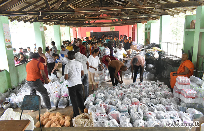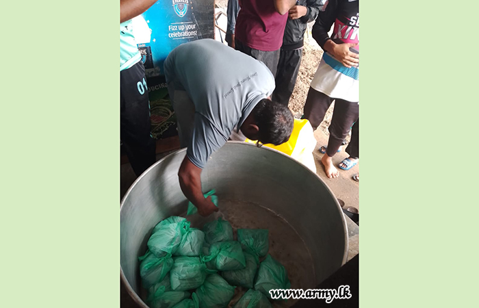 ශ්රී ලංකා යුද්ධ හමුදා ස්වේච්ඡා බලසේනාවේ සේනාවිධායක මේජර් ජෙනරල් කේ.වී.එන්.පී ප්රේමරත්න RSP USP nps psc ගේ අධීක්ෂණය යටතේ, ශ්රී ලංකා යුද්ධ හමුදා ස්වේච්ඡා බලසේනාවේ භටපිරිස් විසින් ඇඹුල්ගම, රජමහා විහාරස්ථානයේ සහ පනාගොඩ, කපුරුගොඩ ස්ථාපිත අවතැන් කඳවුර වල රැදී සිටින පුද්ගලයින් වෙත පිසූ ආහාර පාර්සල්, වියළි ආහාර සලාක සහ පානීය ජල බෝතල් බෙදා දෙනු ලැබූහ.