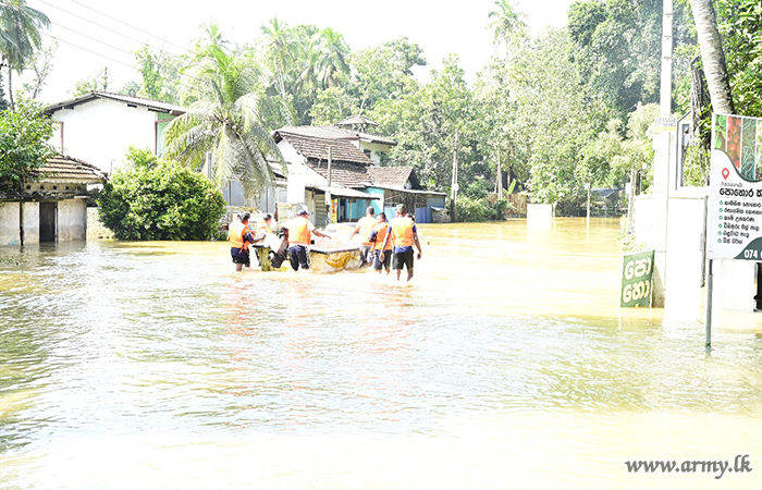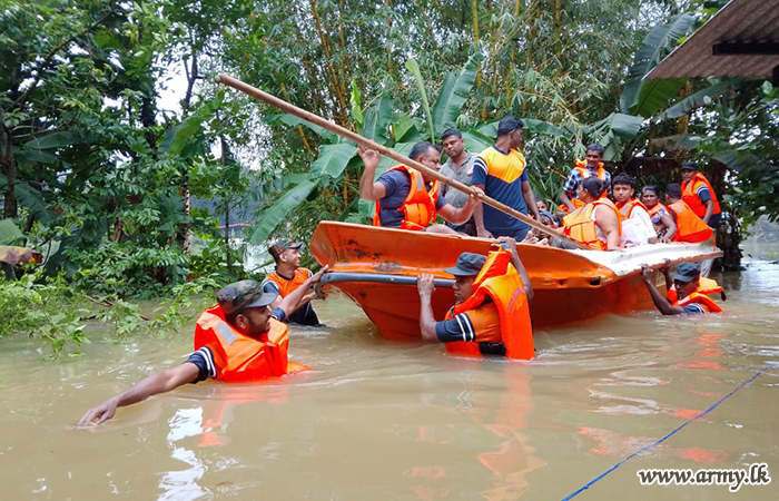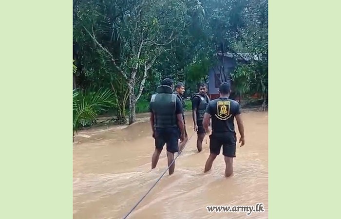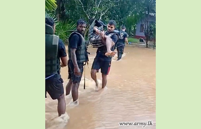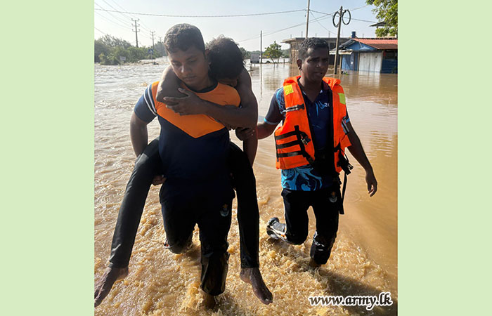 ආරක්ෂක සේනා මූලස්ථානය - බටහිර යටතේ සේවයේ නියුතු භට පිරිස් සහන සේවා කටයුතු අඛණ්ඩව සිදු කරමින් සිටින අතර, එහිදී 14 පාබල සේනාංකයේ භට පිරිස් විසින් ඇලපාත ප්රදේශයේ ශීඝ්රයෙන් ඉහළ යන ගංවතුරට හසු වී සිටි සිවිල් වැසියන් සිව්දෙනෙකු බේරා ගැනීමට සමත් වූහ.