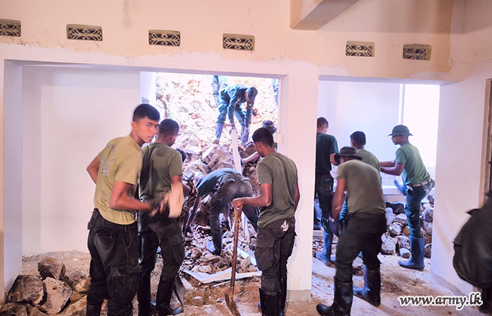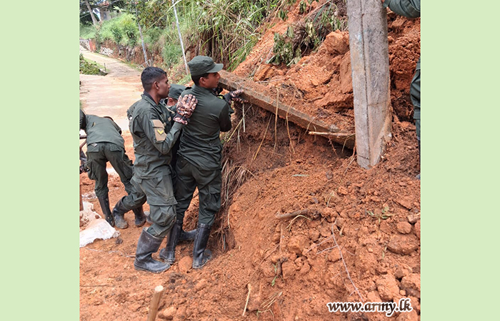 58 වන පාබල සේනාංකය යටතේ රාජකාරීන් සිදුකරනු ලබන යුද්ධ හමුදා භටපිරිස් මාර්ග සංවර්ධන අධිකාරිය සමඟ එක්ව, හානියට පත් තබ්බෝව වැව් පාලමේ ප්රතිසංස්කරණ කටයුතු ආරම්භ කළ අතර, එසේම බෙරිවිල, ඉගුරුවත්ත තේ කම්හල අසල නායයෑමට ලක් වූ ප්රදේශය පිරිසිදු කිරීමට සහාය ලබාදෙන ලදී. මේ අතර, 59 වන පාබල සේනාංකය යටතේ ස්ථාපිත 10 වන බලඇණිය ශ්රී ලංකා සිංහ රෙජිමේන්තුවේ භටපිරිස් විසින් චෙම්මලෛයි සිට නයාරු දක්වා වූ මාර්ගය ප්රතිසංස්කරණය කළ අතර, 12 වන බලඇණිය ශ්රී ලංකා පාබල හමුදාවේ භටපිරිස් විසින් 591 වන පාබල බලසේනාවේ සිට වට්ටප්පලෛයි දක්වා වූ මාර්ගය සහ වට්ටප්පලෛයි හන්දියේ සිට වට්ටප්පලෛයි කෝවිල දක්වා වූ මාර්ගය ද ප්රතිසංස්කරණයි කළහ.