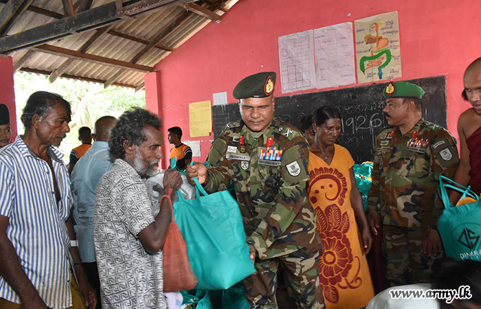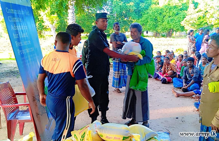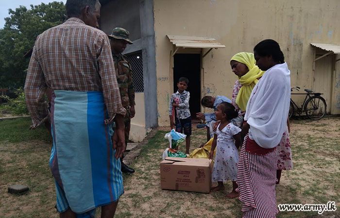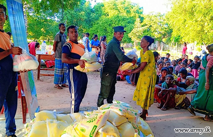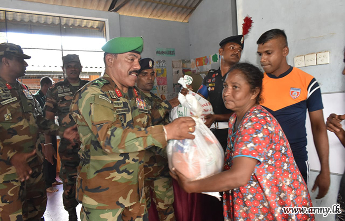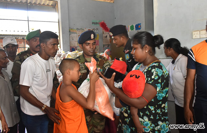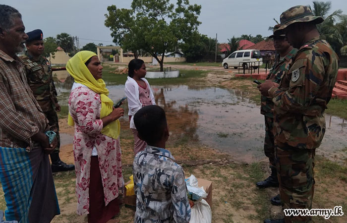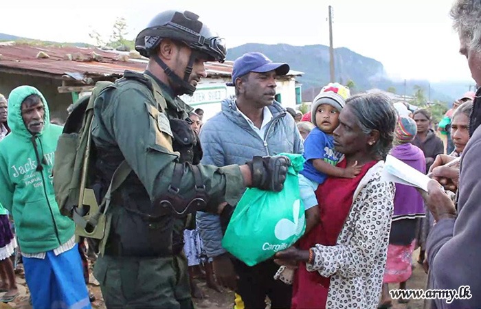 12 වන ශ්රී ලංකා ජාතික ආරක්ෂක බලමුළුවේ භටපිරිස් තිහිලිවෙඩෙයි, පුලිපන්චිකල් සහ කුලවාඩි යන ප්රදේශයන්හි ගංවතුරෙන් පීඩාවට පත් පවුල් 300 ක් සඳහා වියළි ආහාර සලාක මලු බෙදා දුන් අතර, 3 වන බලඇණිය විජයබාහු පාබල රෙජිමේන්තුවේ භටපිරිස් විසින් මුදවා ගත් පිරිස් ද ඇතුළුව ගංවතුරෙන් පීඩාවට පත් සේරපිටිය, විජයපුර, වබෙදගම සහ සල්පිටිගම යන ප්රදේශ වල ස්ථාපිත සහන සේවා කඳවුරුවල සිටින අවතැන් වූ පුද්ගලයින් 1,655 දෙනෙකු වෙත (පවුල් 472) අත්යවශ්ය ආධාර අඛණ්ඩව සපයනු ලබයි. මීට අමතරව, 7 වන රෙජිමේන්තුව ශ්රී ලංකා කාලතුවක්කු හමුදාවේ භටපිරිස් විසින් ගල්ලෑල්ල ප්රදේශයේ තාවකාලික අවතැන් වූ කඳවුරුවල පුද්ගලයින් 300 දෙනෙකු වෙත ආහාර ලබා දෙන ලදී.