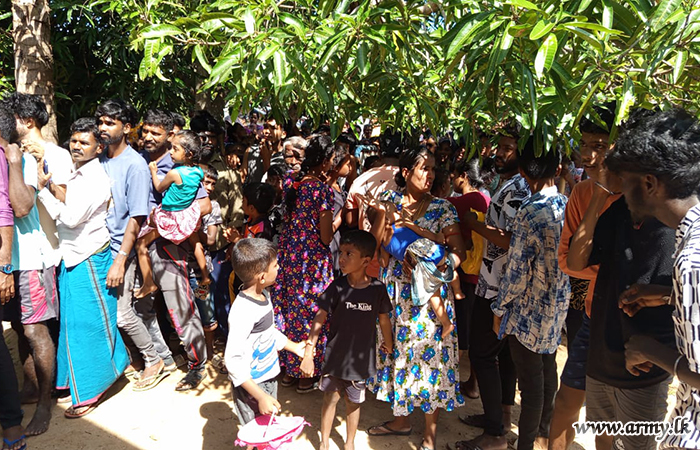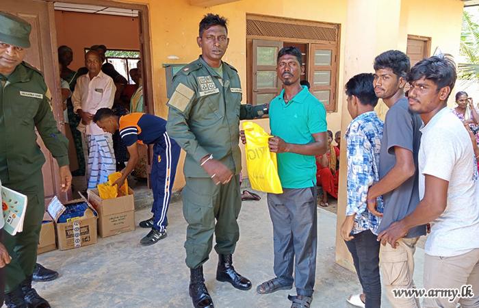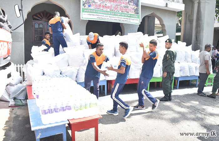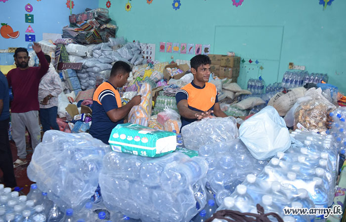එම අවස්ථාවේදීම, 24 පාබල සේනාංකයේ සහ 243 පාබල බලසේනාවේ භටපිරිස්වල දායකත්වය ඇතිව කාත්තන්කුඩි ප්රජාව විසින් රුපියල් 2,500,000ක් පමණ වටිනා වියළි සලාක පාර්සල් 500ක් එකතු කරන ලදී. මේවා මුතූර් ප්රදේශයේ ආරක්ෂිත මධ්යස්ථානවල සිටින පවුල් සහ මාවිල්ආරු ප්රදේශයේ ගංවතුරෙන් පීඩාවට පත් ජනතාව අතර බෙදා හැරීම සඳහා භාර දෙන ලද අතර, ඒ සඳහා වාකරේ පිහිටි 233 පාබල බලසේනාවේ සහය හිමි විය.