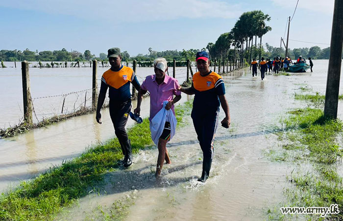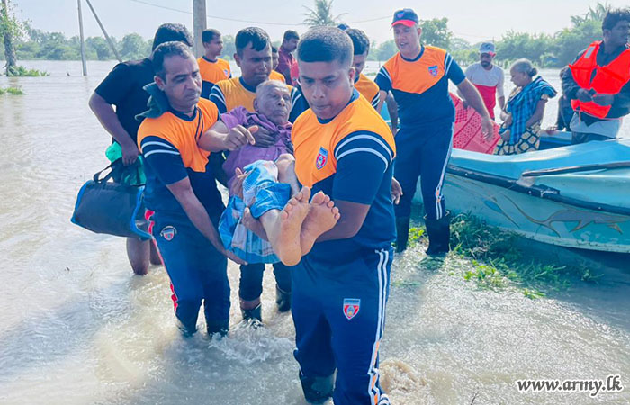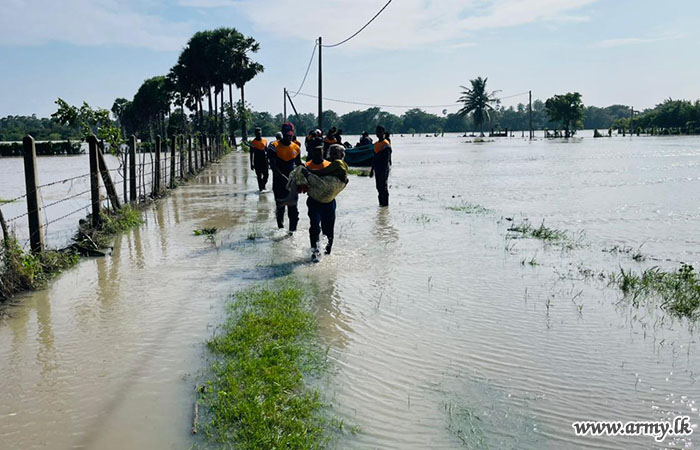 අධික වර්ෂාව හේතුවෙන් ආරක්ෂක සේනා මූලස්ථානය - නැගෙනහිර බලප්රදේශයට අයත් පොළොන්නරුව පොදු ක්රීඩාංගණය, නෙළුම්වැව සහ ගාල්ලැල්ල යන ප්රදේශවල දරුණු ගංවතුර තත්ත්වයට මැදිව සිටි ගර්භණී මාතාවන් ඇතුළු සිවිල් වැසියන් 565 දෙනෙකු පමණ මුදා ගැනීමට කටයුතු කෙරිණි. මීට අමතරව, අවතැන් කඳවුරුවල රැඳී සිටින 3,000කට ආසන්න සිවිල් වැසියන්ට සහන සැලසීම සඳහා 7 ඉංජිනේරු භටපිරිස් භටපිරිස් යොදවා ඇත.