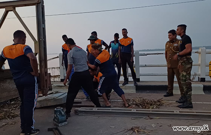 අඛණ්ඩව පවතින අධික වර්ෂාව හේතුවෙන් හානියට පත් වූ පොතුවිල් – උල්ලා පාලම ප්රතිසංස්කරණය කිරීම සඳහා මාර්ග සංවර්ධන අධිකාරියට සහය වීමට 14 වන ශ්රී ලංකා සිංහ රෙජිමේන්තුවේ භටපිරිස් පියවර ගත්හ.