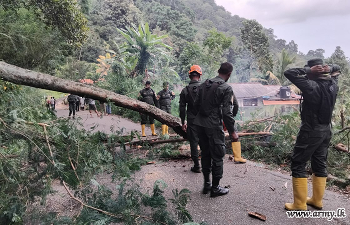 මේ අතර, පල්ලේගම මහජන පොළ අසලින් ගලා බසින ගිං ගඟේ ජල ගලායාමට බාධා කරමින් කඩා වැටී තිබූ විශාල නුග ගසක්, 3 බලඇණිය ගැමුණු හේවා බලකායේ භටපිරිස් විසින් සාර්ථකව ඉවත් කරන ලදී.