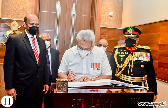 11. தளபதியின் அலுவலகத்திலுள்ள விருந்தினர் பதிவேட்டில் ஜனாதிபதியவர்கள் தனது எண்ணப் பகிர்வுகளை பதிவிட்டார்
