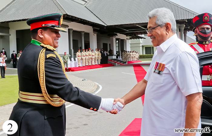2. இராணுவ தலைமையகத்தில் அன்புடன் வரவேற்பளிப்பும் பரீட்சாத்த அணிவகுப்பு மரியாதைக்கான அழைப்பு விடுத்தலும்
