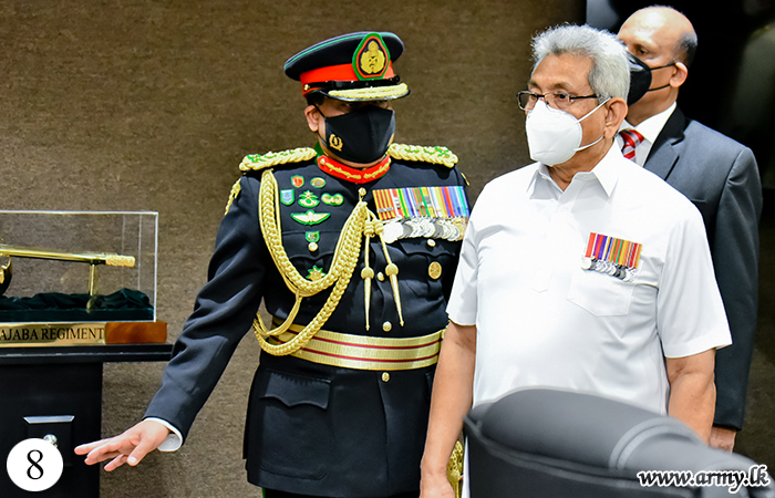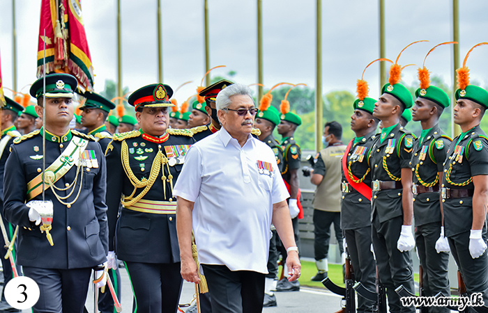 3. விஷேட மேடையிலிருந்து கஜபா படையணியின் படையினரின் மரியாதையை ஏற்றுக்கொள்ளல்