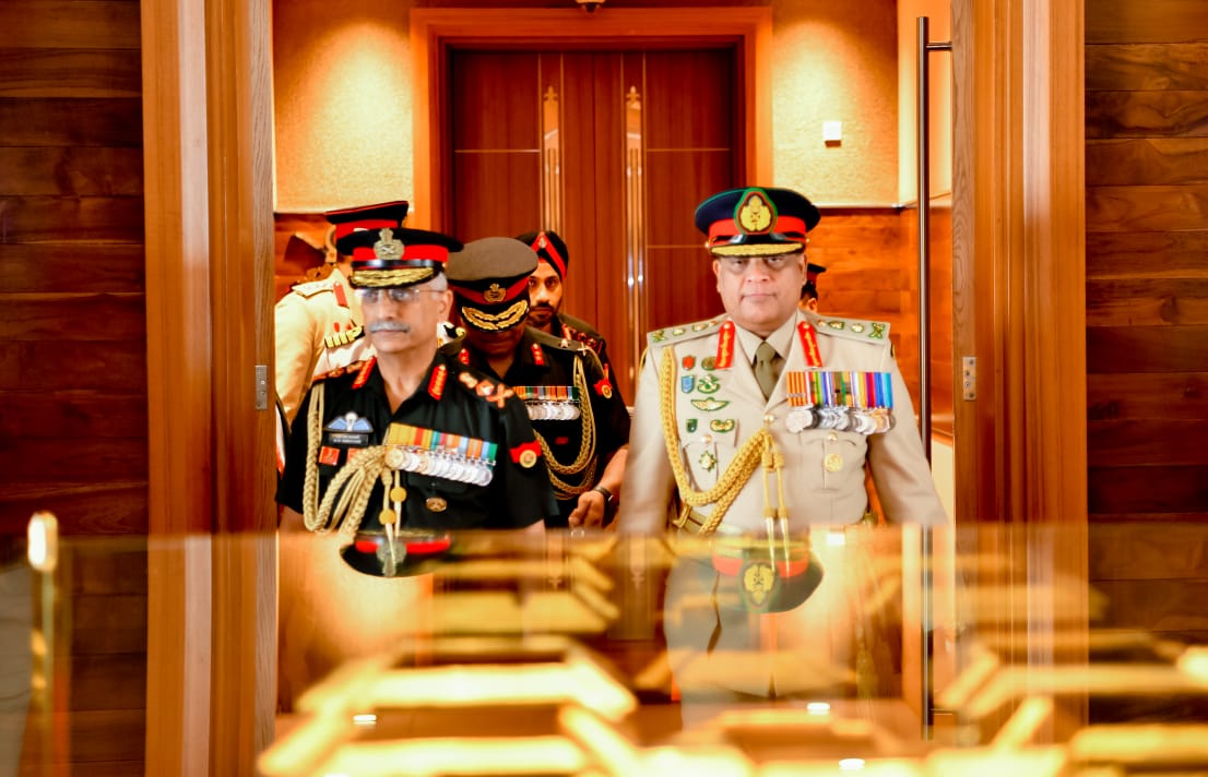 இலங்கைக்கான ஐந்துநாள் நல்லெண்ண விஜயம் மேற்கொண்டிருக்கும் இந்திய இராணுவத் தளபதி ஜெனரல் மனோஜ் முகுந்த் நரவனே மற்றும் அவரது பாரியாருக்கு இராணுவ தலைமையகத்தில் பாதுகாப்பு பதவி நிலை பிரதானியும் இராணுவ தளபதியுமான ஜெனரல் ஷவேந்திர சில்வா மற்றும் அவரது பாரியாரும் இராணுவ சேவை வனிதையர் பிரிவின் தலைவியுமான திருமதி சுஜீவா நெல்சன் ஆகியோரால் நேற்று (15) மாலை சிறப்பு விருந்துபசாரமொன்று வழங்கப்பட்டது.