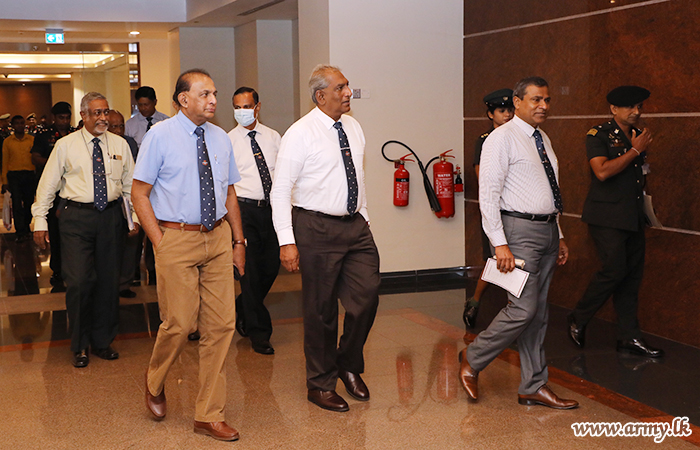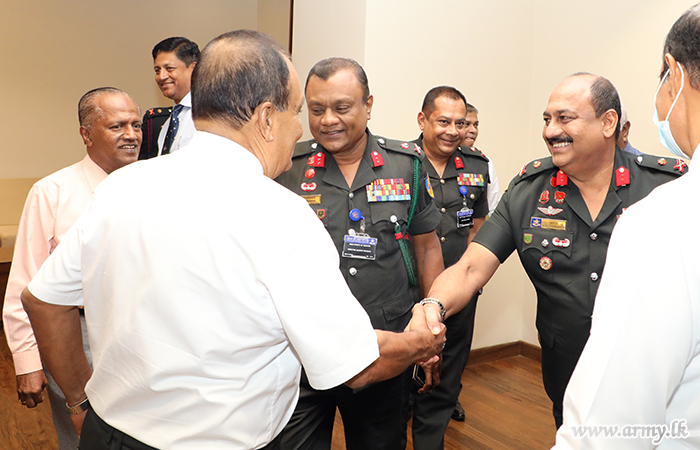நிறைவேற்று பணிப்பாளர் நாயகம் மேஜர் ஜெனரல் எம்ஜிடபிள்யூடபிள்யூஎம்சிபி விக்கிரமசிங்க ஆர்டபிள்யூபீ ஆர்எஸ்பீ என்டியு பிஎஸ்சீ, ஆளனி நிர்வாக பணிப்பகத்தின் பணிப்பாளர் பிரிகேடியர் கேஏயு கொடித்துவக்கு ஆர்எஸ்பீ யுஎஸ்பீ பிஎஸ்சி ஐஜி, ஆகியோரிடம் இணைந்து இராணுவத் தலைமையகத்திற்கு முன்பாக ஓய்வுபெற்ற கொடி நிலை அதிகாரிகள் சங்கத்தின் செயற்குழு உறுப்பினர்களை வரவேற்றனர்.