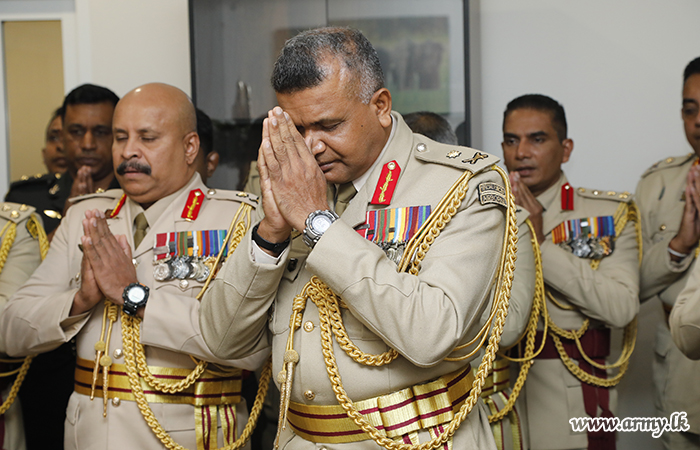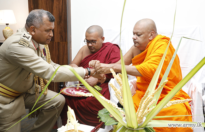 பௌத்த பிக்குகளின் ‘செத்பிரித்’ பராயணங்களுக்கு மத்தியில் மேஜர் ஜெனரல் சுஜீவ செனரத் யாப்பா அவர்கள் புதிய பதவியை ஏற்றுக்கொண்டதற்கான உத்தியோகபூர்வ ஆவணத்தில் கையொப்பமிட்டார். பின்னர் துறவிகளுக்கு ‘தானம்’ மற்றும் ‘தாம்பூலம்’ வழங்கி ஆன்மீக ஆசீர்வாதங்களைப் பெற்றார்.