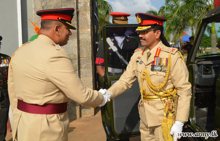 படைத் தளபதிக்கு தலைமையகத்தில் இராணுவ அணிவகுப்பு மரியாதைகள் வழங்கப்பட்டு வரவேற்கப்பட்டார்.
