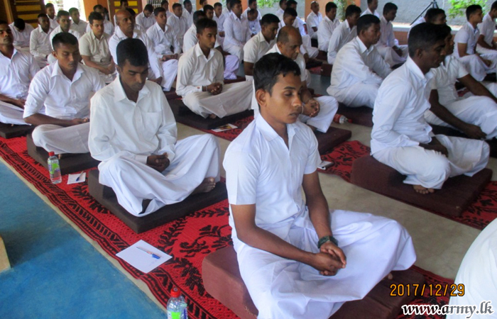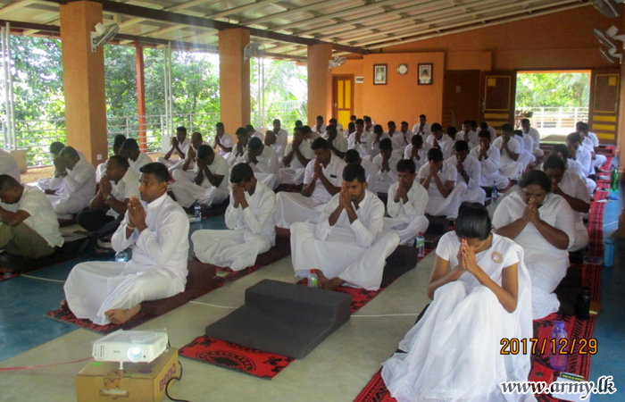 இந்த தியான பயிற்சிகளில் இராணுவ அதிகாரிகள் 50 பேரும்,இலங்கை கடற்படையிரும் இணைந்திருந்தனர். தியானங்களை மதிப்புக்குரிய திவசேனபுர தேரர் அவர்களினால் மேற்கொள்ளப்பட்டன.