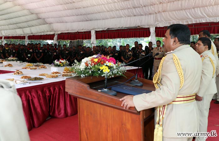 பின்பு மேற்கு பாதுகாப்பு படைத் தளபதி படைத் தலைமையகத்தில் இருக்கும் படையினர் மத்தியில் உறையாற்றும்போது தான் இந்த படைத் தலைமையகத்தில் கடமை புரிந்த காலத்தில் இராணுவத்தினரால் வழங்கிய சேவையை பாராட்டினார்.